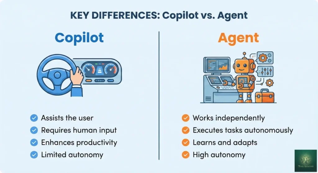 Before we dive into specific tools, you need to understand what makes an “agent” different from a “copilot.” This distinction determines which tool fits your workflow.