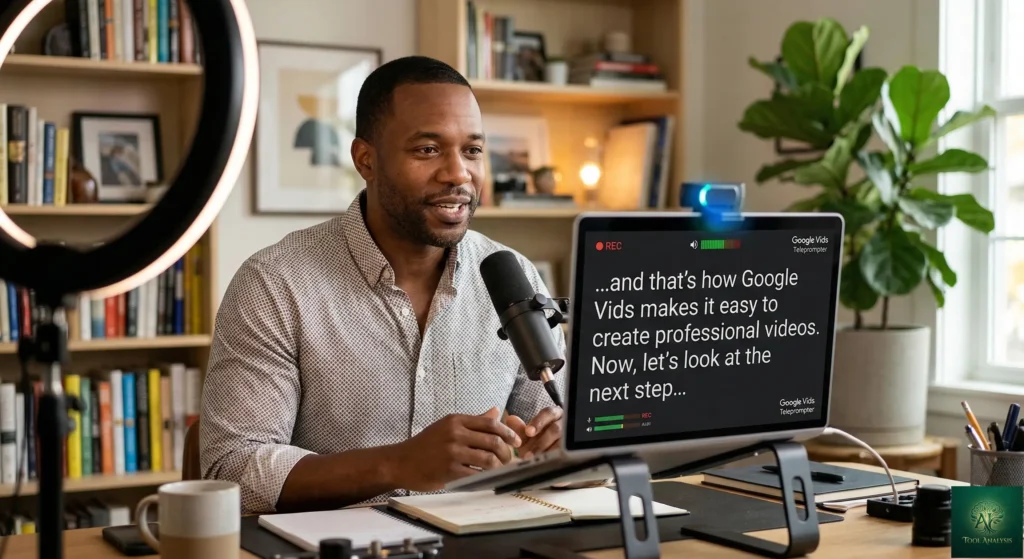 This is the feature that doesn’t get enough attention. Record yourself presenting with your script scrolling on screen, and the recording drops directly into your video project. No export. No upload. No switching apps. For anyone who records explanatory content, tutorials, or presentations, this is a genuine workflow improvement. The AI-powered transcript trimming automatically removes awkward pauses and filler words. If you regularly create talking-head content for your team, this single feature justifies using Vids over competitors that don’t integrate recording so seamlessly.