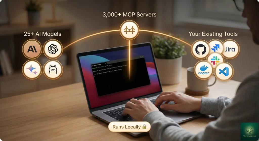 π Key strength: 3,000+ MCP tool connections (GitHub, Slack, Jira, Docker) + works with any AI model (Claude, GPT, Gemini, local).